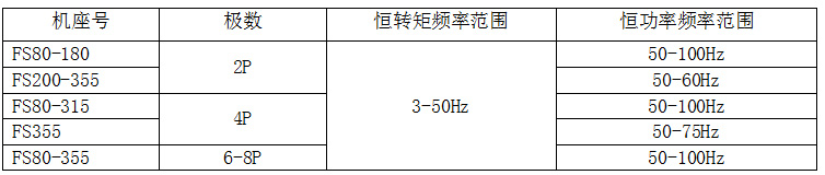 机座号、极数与变频范围的对应关系表